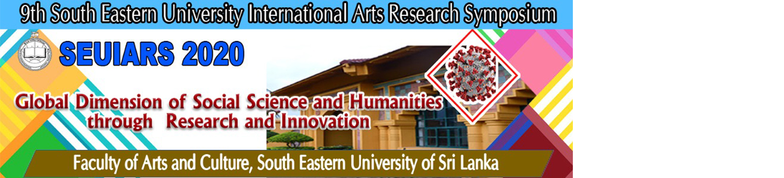 The 9th International Symposium on "Global Dimension of Social Science and Humanities through Research and Innovation"(SEUIARS 2020) will take place in Faculty of Arts and Culture, South Eastern University of Sri Lanka, Oluvil, Sri Lanka on 16th December 2020, Organized by the Faculty of Arts and Culture, SEUSL.
