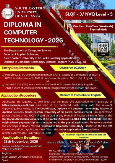 The Postgraduate Unit of FAS, SEUSL is one of the key Functional Units of FAS, which reviews and regulate matters relating to postgraduate study programs. It deals with selection of candidates, admission and progress monitoring of the registered students.