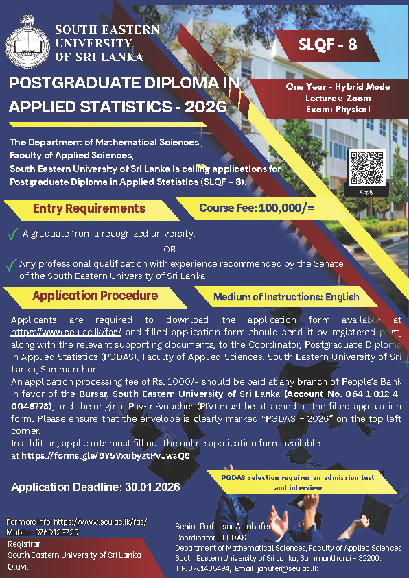 19 Dec South Eastern University of Sri Lanka (SEUSL) is pleased to extend its heartfelt congratulations to Dr. Ajith Thamboo