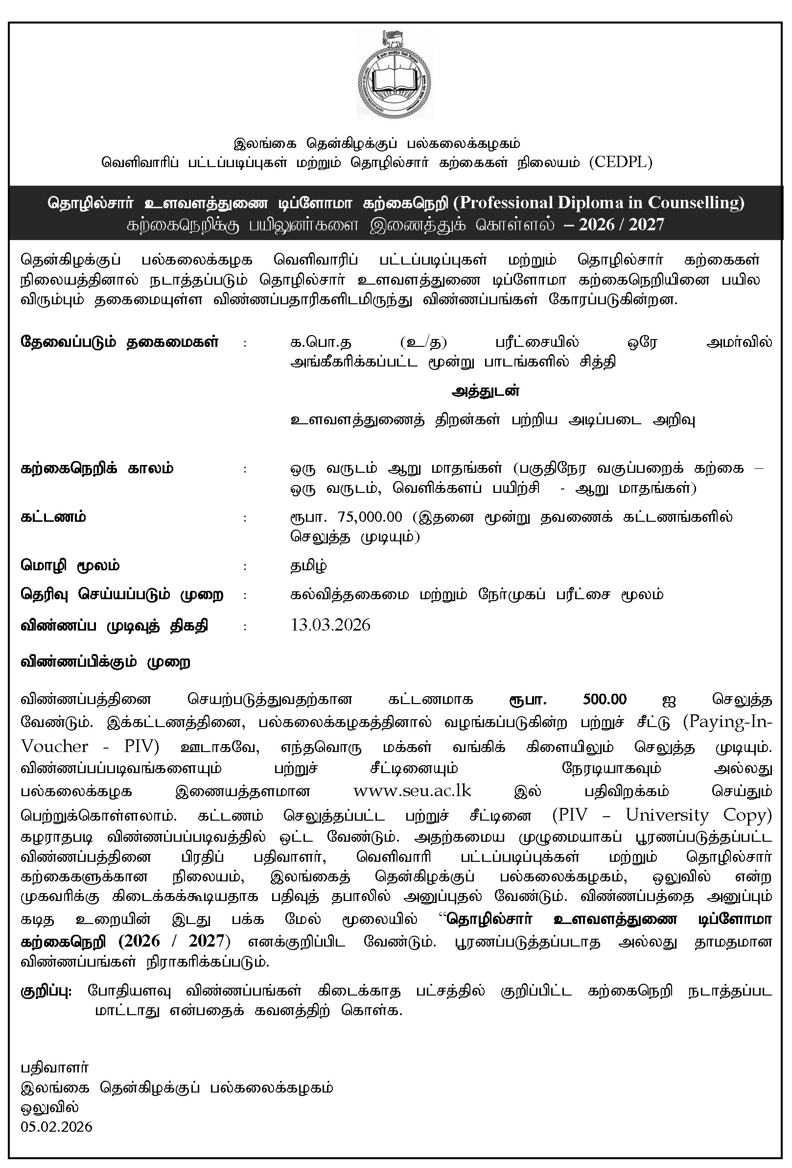 Application for Professional Diploma in Counselling – 2026 / 2027