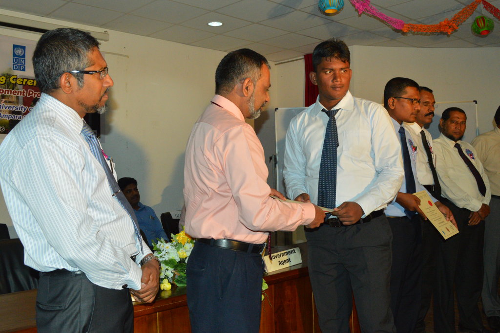 The progrmme chaired by the Director of the CGU MSM. Jalaldeen was attended by the Vice Chancellor of SEUSL Prof. MMM Najim as Chief Guest and gave away the certificates to those who have completed their training prorammes . UNDP Representative Dhanaraj, Additional Government Agent MI. Ameer Ali participated as Special Guest and Divisional Secretaries MM Nazeer (Irakamam), NMM. Muzarrath (Pottuvil), A.Mansoor (Sammanthurai) and S.jegarajan (Thirukovi) graced the occasion as guests of honour.
