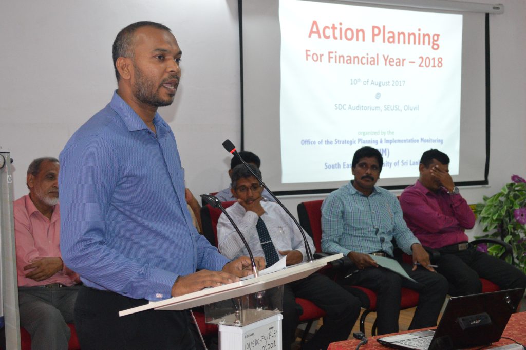 All deans of faculties, registrar, bursar, heads of the departments, directors of various centers and units of the university and administrative staff participated in this event and showed their enthusiastic engagement in planning sessions. Mr. H.M. Nijam, the Director, OSPIM in his presentation emphasized that that these types of initiatives are and will be implemented with the objective of achieving maximum harmonization and alignment of the university's yearly actions and budget with long term directions and desires of the entity and Sri Lanka's national policy priorities in higher education. OSPIM also plans to conduct series of a comprehensive planning and consultative sessions in 2018 with the objective of preparing university's Strategic Plan for the next medium term to reckon from 2019 to 2023. He added.