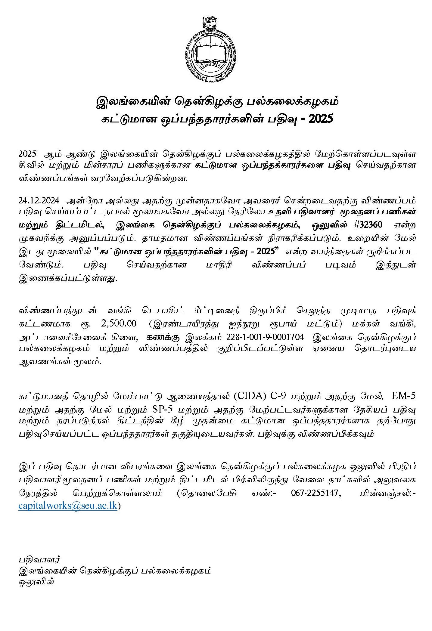 19 Nov REGISTRATION OF CONSTRUCTION CONTRACTORS - 2025 (Civil and Electrical) Web Admin 2024-Nov-19 SSD Advertainment Application