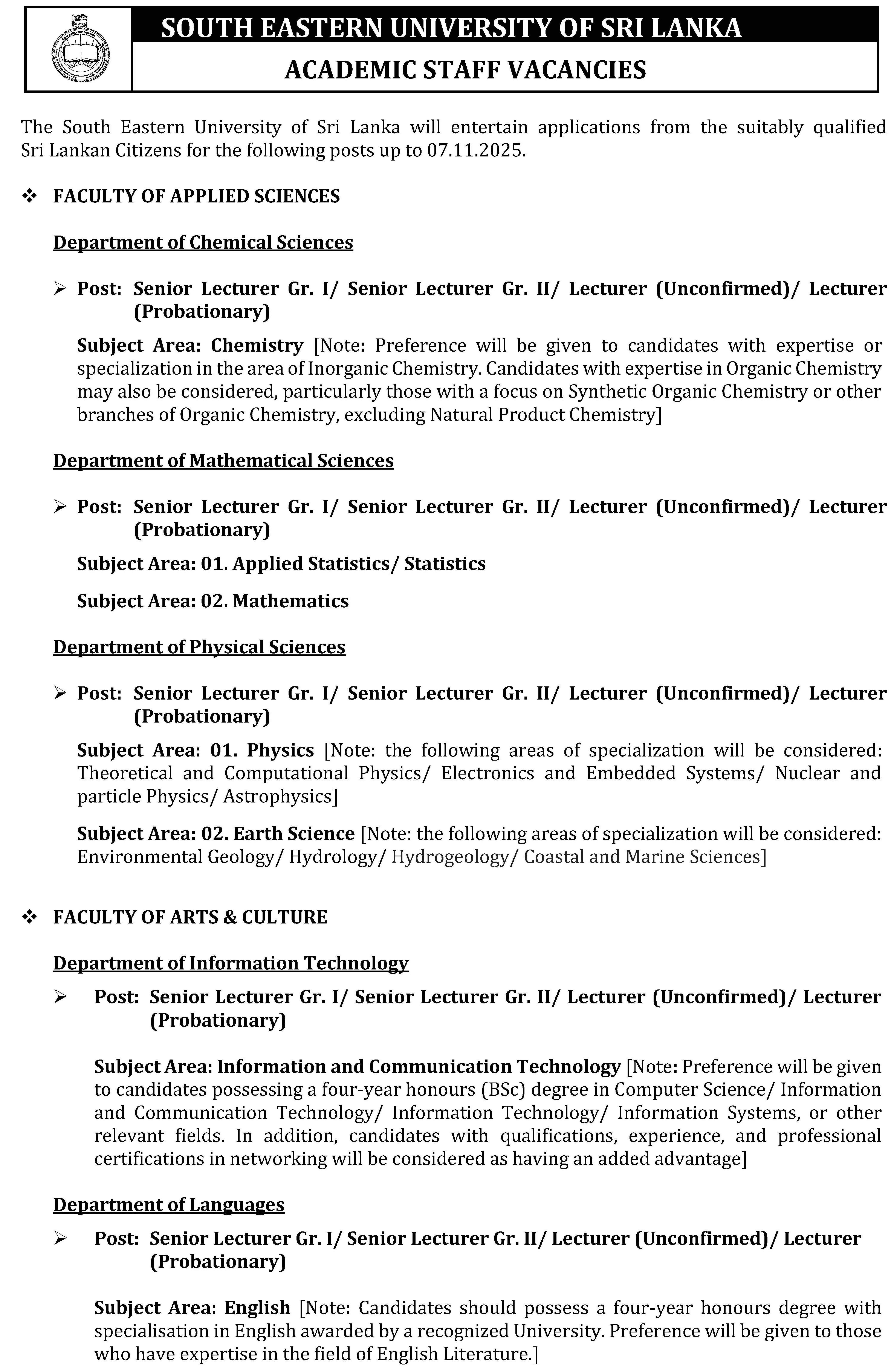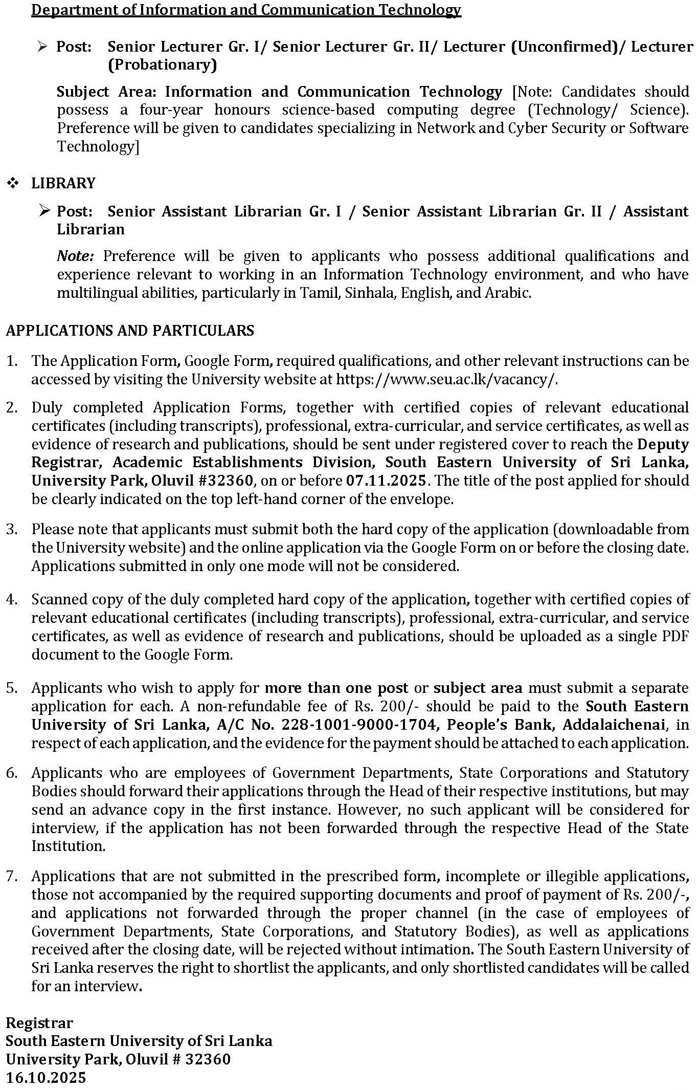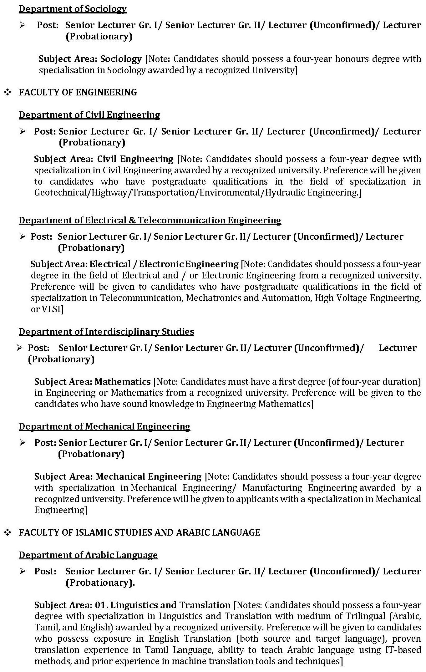 Download [Application form for the Post of Senior Lecturer Gr. I/ Senior Lecturer Gr. II/ Lecturer (Unconfirmed)/ Lecturer (Probationary)]